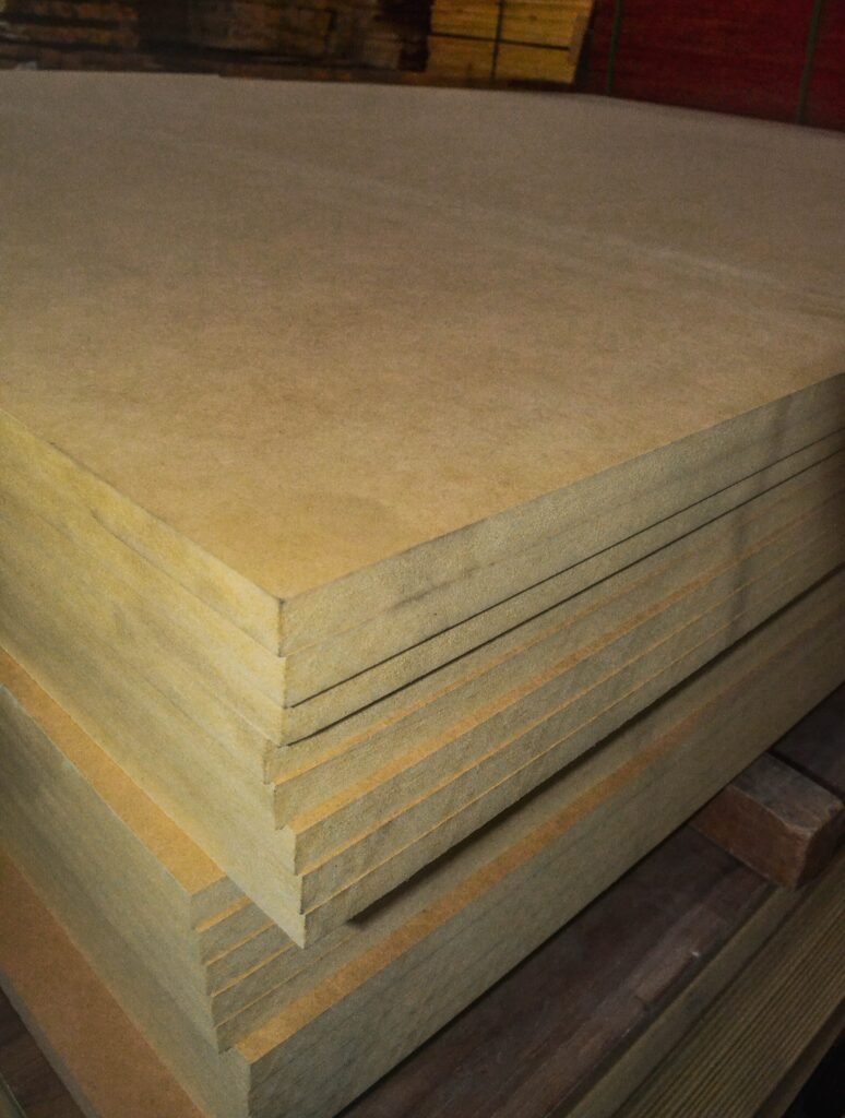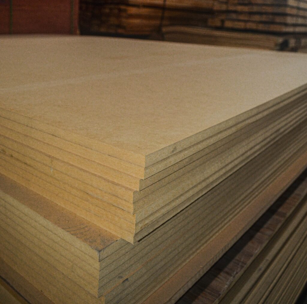 Los tableros de Densidad Media (Medium Density Fibreboard) se fabrican a partir de fibras de madera, posteriormente se aplican adhesivos y se prensa. Ofrece una superficie lisa y muy uniforme. Destaca además por su resistencia y durabilidad.